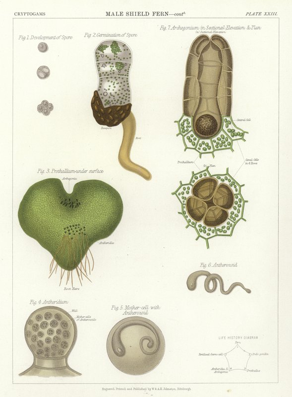 botany · botanical · plant · plants · life · diagrams · diagramatic · inside · male shield fern · cryptogams · Private Collection / Bridgeman Images · / Look and Learn |