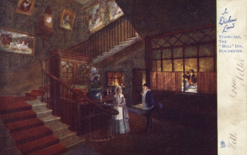 card · bull inn · postcard · postcards · staircase · rochester · Private Collection / Bridgeman Images · / Look and Learn |
