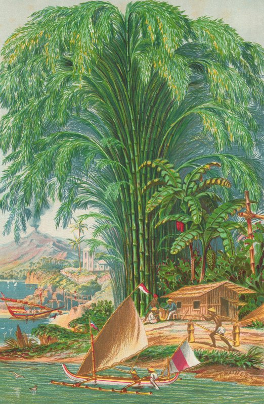 plants · boats · canes · outrigger · tropical · uses · bamboo · nature · botany · house · canoes · transport · Private Collection / Bridgeman Images · / Look and Learn |