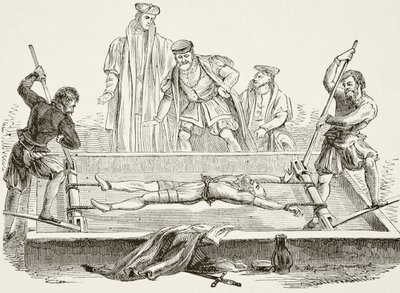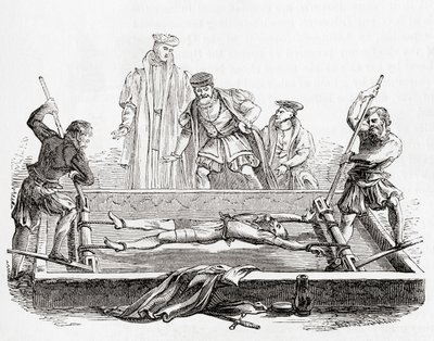 Cuthbert Simpson, Tortured on the Rack in the Tower of London, 1558, from Old England: A Pictorial Museum, pub. 1847(Cuthbert Simpson, also Symson, Simson or Symion, tortured on the rack in the Tower of London, during the Marian persecution, 1558, from Old England: A Pictorial Museum, pub. 1847)English School |