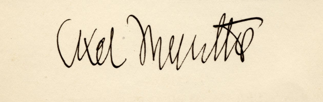 Signature of Axel Martin Fredrik Munthe, from 'The Story of San Michele', by Axel Munthe, Published in 1932(Signature of Axel Martin Fredrik Munthe, from 'The Story of San Michele', by Axel Munthe, published in 1932 )English School |