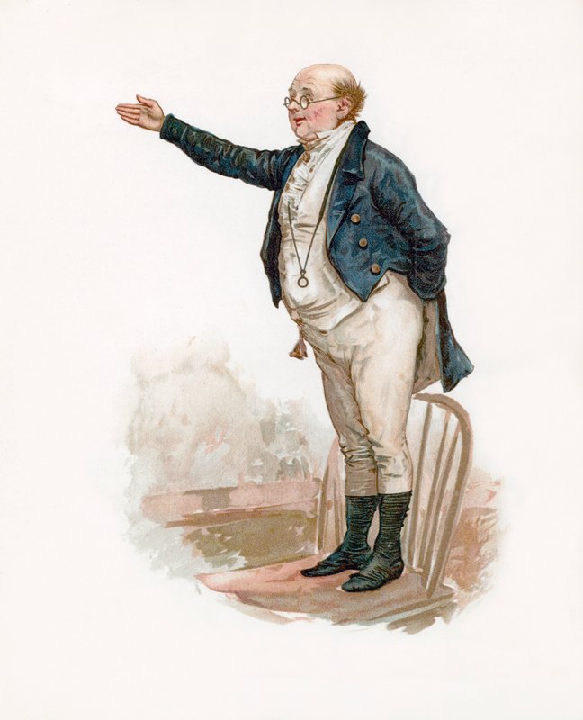 charles dickens · novel · english literature · characters · character · mr pickwick · pickwick papers · speaking · speech · public · chair · Private Collection / Bridgeman Images · / Look and Learn |
