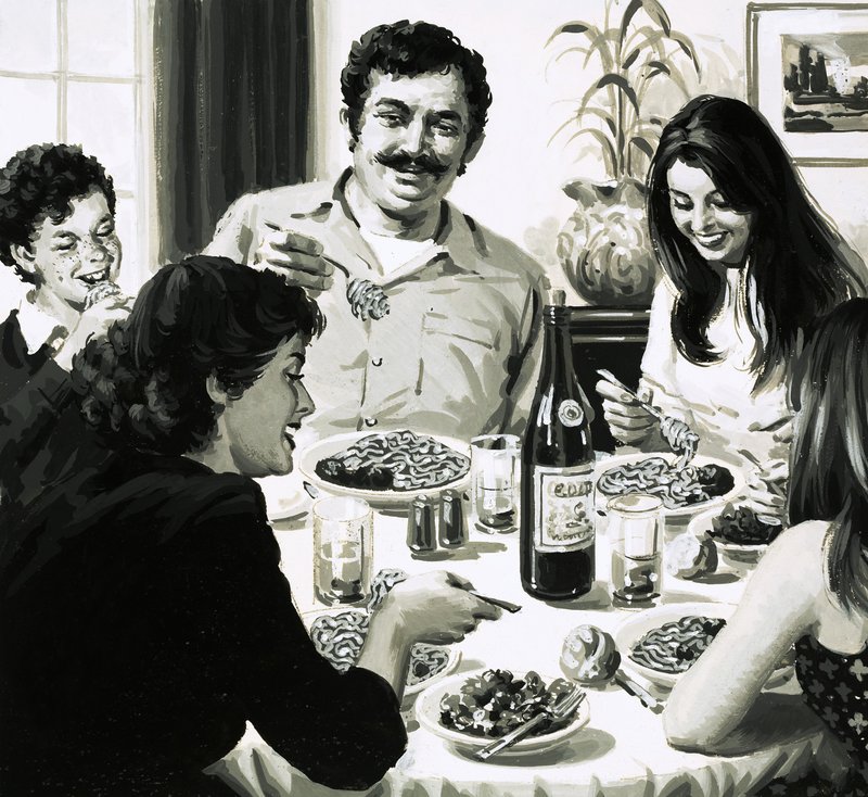 italy · italian · dinner · food · spaghetti · pasta · Private Collection / Bridgeman Images · / Look and Learn |