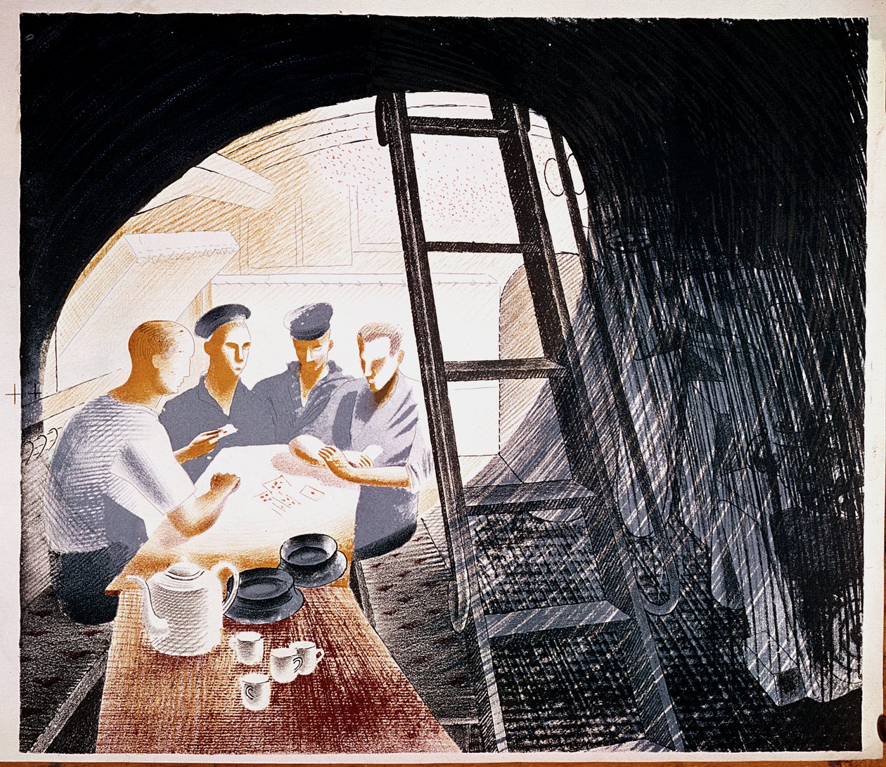 navy · below deck · card game · ladder · cabin · sailor · uniform · submarine · galley · royal navy · wwii · world war two · second · #195 · Private Collection / Bridgeman Images