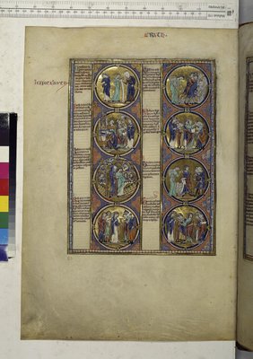 Full page: eight medallions enclosing miniatures and accompanied by text, c.1225-1250(Full page: eight medallions enclosing miniatures and accompanied by text, c.1225-1250 (tempera on parchment))Erich Lessing |