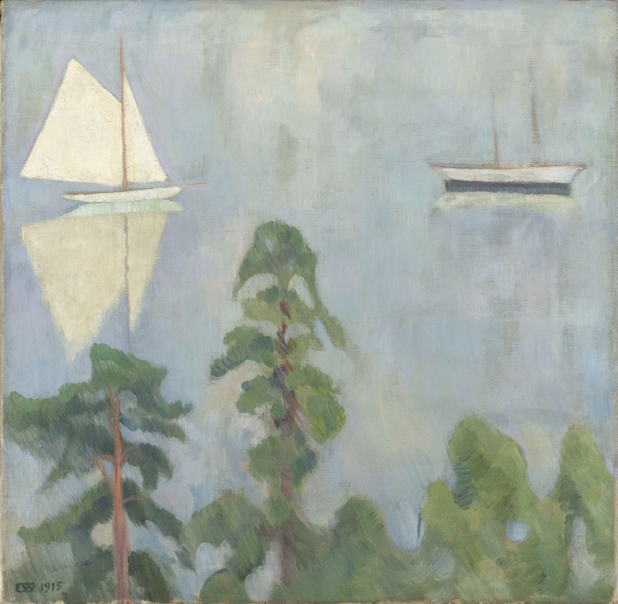 1910s · 1910's · 1910-1919 · 1910-1919 years 10 10s · years 1910 - years 10 - years ten · 1900-1910 years 10 10s · 20th century · 20 century · xx century · xxth century · twentieth century · c20th · 20 20th xx xxth twentieth century · 20 20th xx xxth century · 20 20th 20th xx xxth 20th century · 20th · early twentieth century · mid-20th century · tree · trees · arts · works of art · colour · color · coloured · colors · colours · colored · water · lake · lakes · pond · millpond · loch · lochs · norway · norwegian · norwegians · norway norwegian · europe · european · scandinavia · scandinavian · landscape · landscapes · painting · paint · paintings · painting: · reflection · reflections · nobody · without anyone · no people · without people · sailing boat · sailboat · sail boat · sailboats · sailing ship · sail boats · boat · boats · transport · means of conveyance · transportation · passenger transportation · means of transport · mode of transport · oil on canvas · oil painting · oil paintings · oil paints · oil (painting) · sailing · mzpainting · · Nasjonalmuseet, Oslo, Norway / Bridgeman Images |