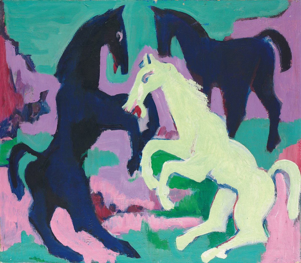 20th century · early twentieth century · outdoor · country · time of day · close-up · oil on canvas · oil painting · rural · no person · neighing · black · close up · outside · standing · animal noise · daytime · open mouth · modern art · equine · white colour · closeup · pink · full length · early 20th century · hind leg · european artist · no-one · three animals · hooved mammal · legs raised · black colour · leg raised · white · posture · rearing · 1920s · three · countryside · german art · artist german · horses · outdoors · mammal · artist european · small group of animals · animal · german expressionist · neigh · artist-german · full-length · nobody · equestrian · side view · twentieth century · expressionist · expressionism · no people · artwork · animal behaviour · group · german expressionism · small group · colour · german artist · side · horse · painting · kirschner · ernest ludwig kirchner · ludwig kirchner · ernst ludwig kirchner · ernst-ludwig kirchner · kirchner · rose · 1920s · drei · pferd · ernst ludwig kirschner · die brucke · Private Collection / Bridgeman Images |