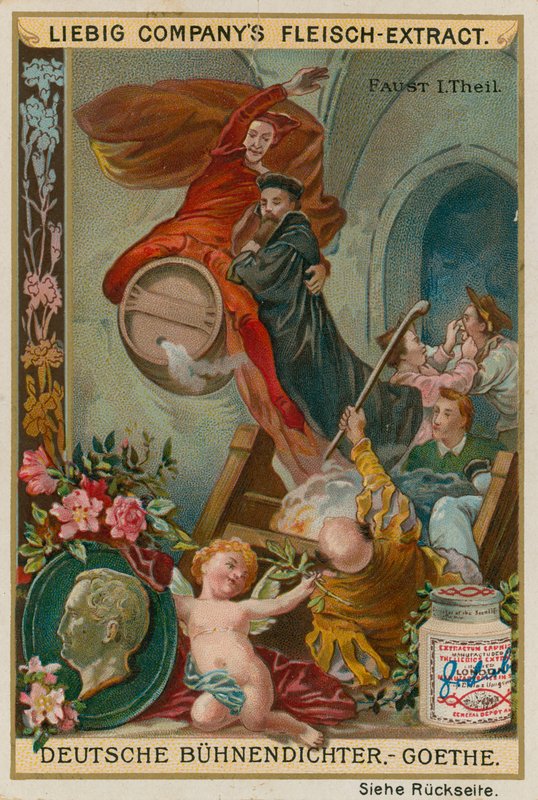 german · playwrights · composer · scenes · works · famous · germans · theatrical · stageworks · performance · mephistopheles · street · fight · brawl · devil · demon · johann wolfgang · Goethes Faust · Private Collection / Bridgeman Images · / Look and Learn |