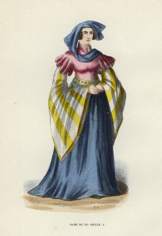 history · historical · historic · clothes · costume · dress · moyen age · medieval · middle ages · europe · european · dame du xve siecle · woman · century · female · lady · Private Collection / Bridgeman Images · / Look and Learn |