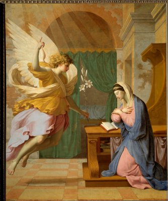 17th century · 17 century · xvii century · xviith century · angel · annunciation · bible (scene) · biblical scene · bible (character) · bible · biblical · french academy · paris · parisian · france (ile de) · france · french · european union · europe · european · colour · colours · color · flower · botany · botanical · natural history · science · lily · monarchy · monarchic · royalty · royalism · gabriel archangel · archangel · painting · paint · religion · religious · le sueur eustache (1617-1655) · painter · artist · · Museo de Bellas Artes, Toledo, Spain / Bridgeman Images