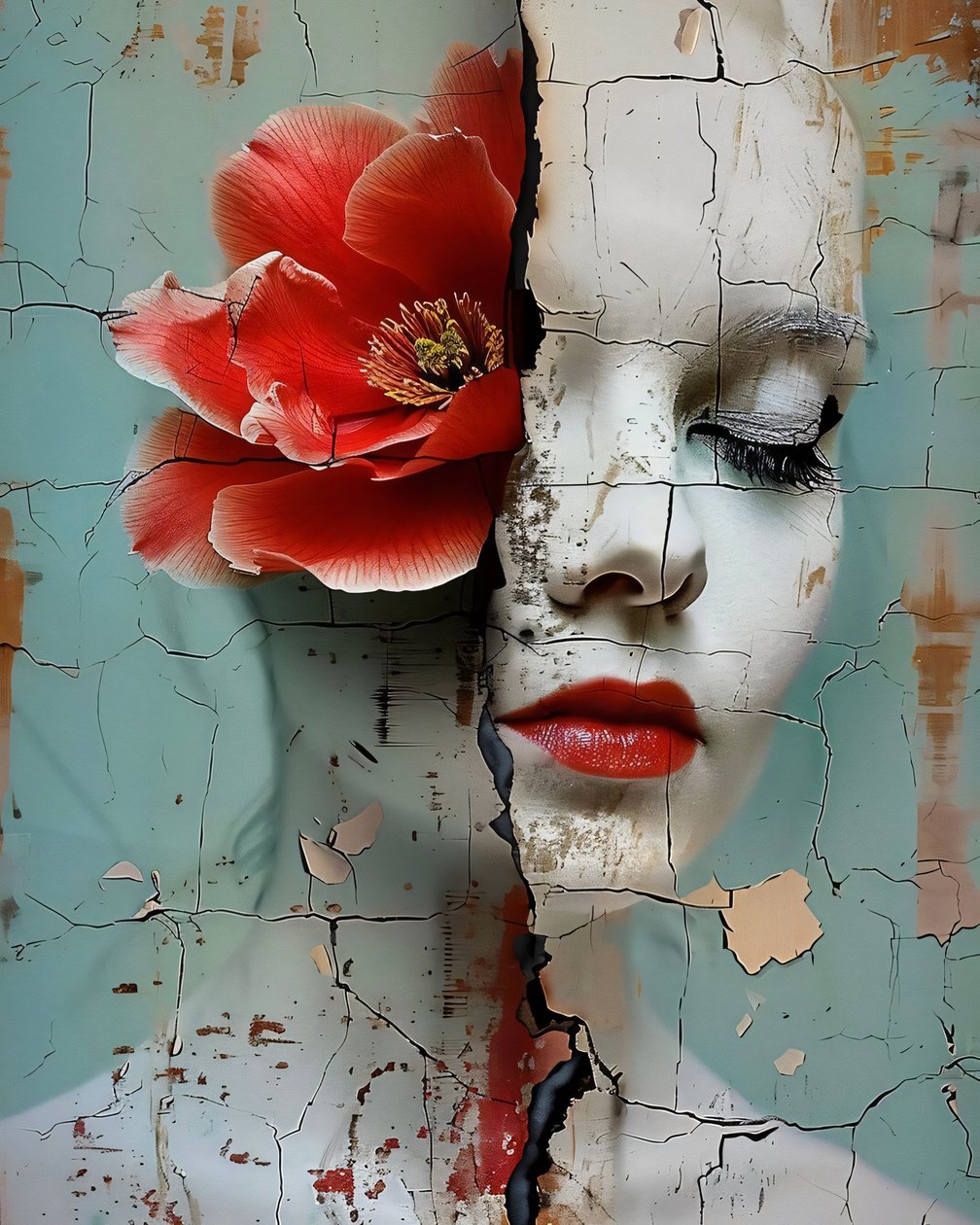 This image was created with the assistance of generative AI. 2023 · Digital art · Picture ID: 1520538 Explore Broken Sleeping Beauty online canvas art prints and wall portraits for sale, perfect for contemporary living spaces.