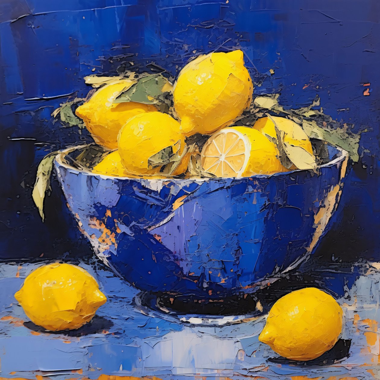 A blue ceramic vase with lemon in the kitchen(A blue ceramic vase with lemon in the kitchen, Framed wall Decor )F. Abderrahim |