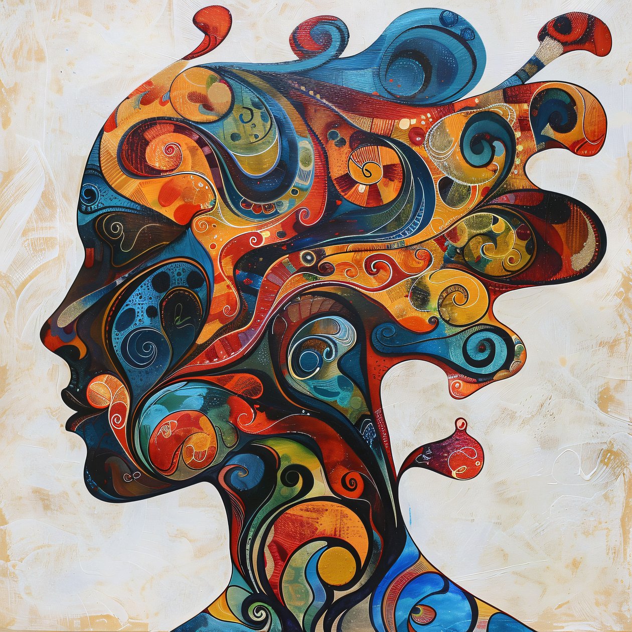 Silhouette of a Woman, Colored Hair & Swirls(silhouette of a woman, colored hair & Swirls, large canvas prints)F. Abderrahim |