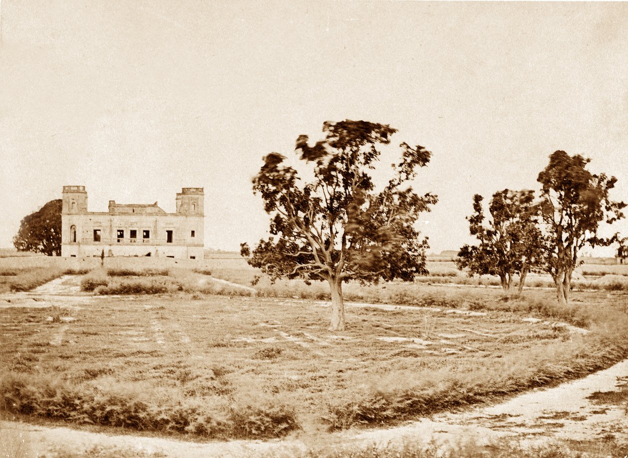 indian landscape · house · home · building · exterior · facade · sepoy mutiny · siege of lucknow · dilapidated · derelict · arid · colonial architecture · kanpur · uttar pradesh · asian · india · National Army Museum, London / Bridgeman Images