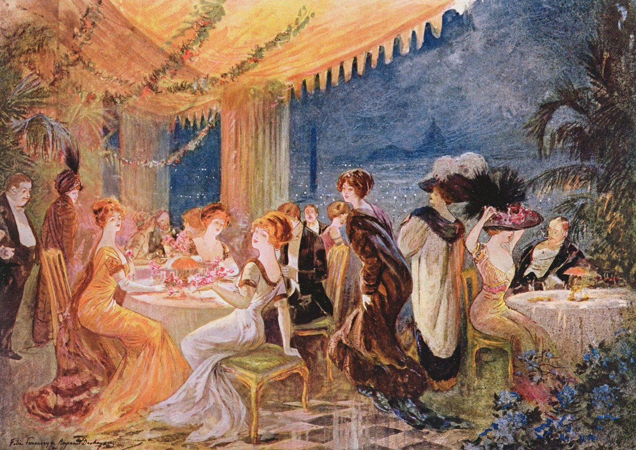 society · elegance · elegant · evening dress · party · social history · male · female · brussels world fair of 1910 · international exhibition · vie mondaine · Private Collection / Bridgeman Images |