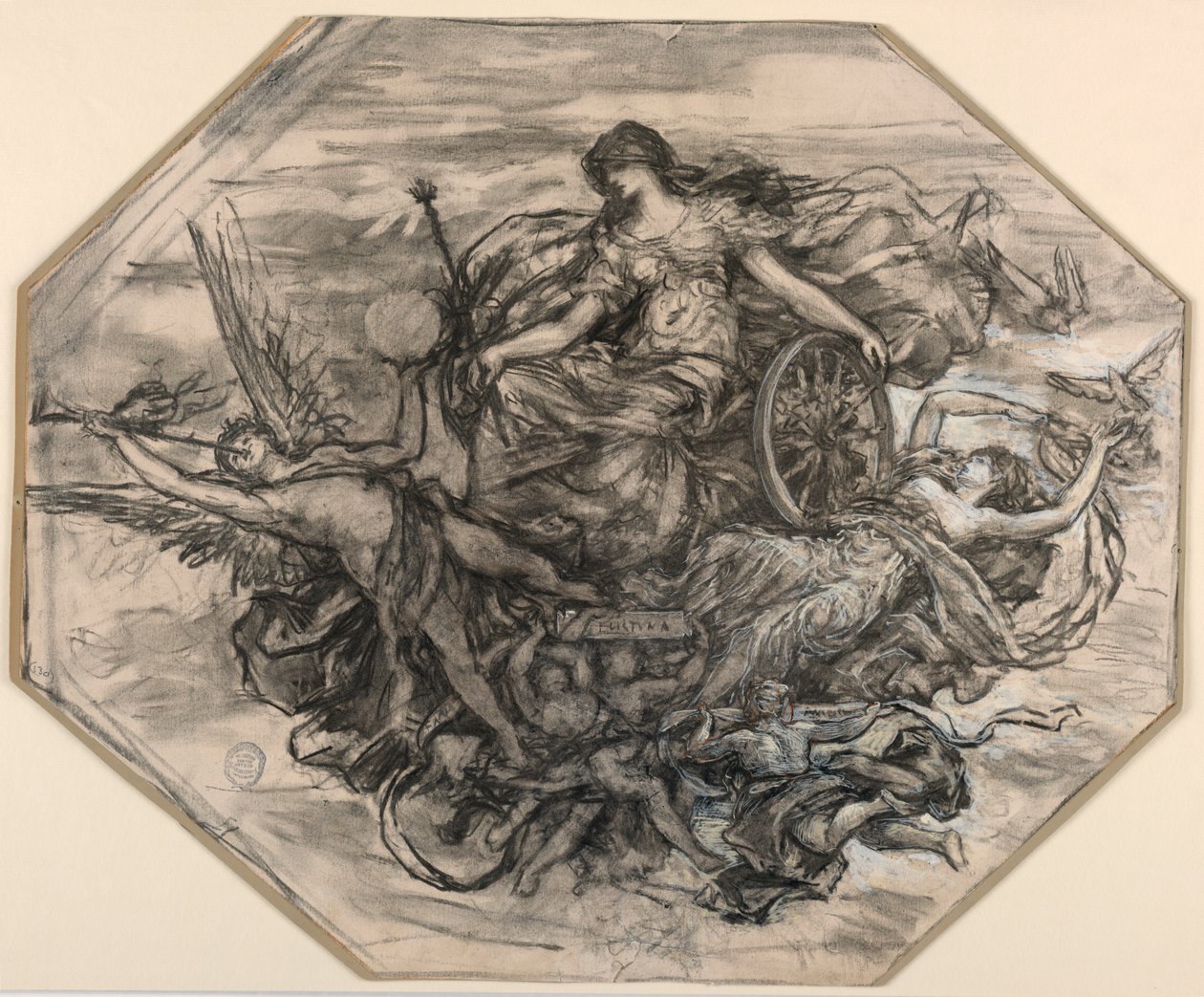 Undated · Charcoal, red chalk, brush and white gouache on paper, laid down on grey board