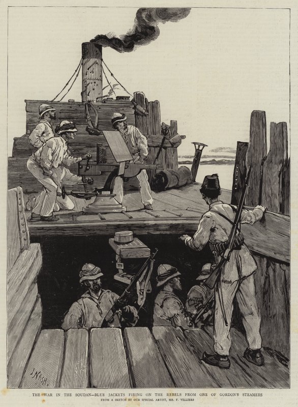 The War in the Soudan, Blue Jackets Firing on the Rebels from One of Gordon's Steamers(The War in the Soudan, Blue Jackets firing on the Rebels from One of Gordon's Steamers )Frederic Villiers |
