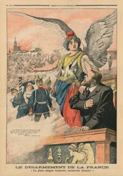 Goodbye!!, French soldiers on the way to Madagascar, 1895 Goodbye to our soldiers from Madagascar: departure of the French expedition for Madagascar - in Fraternal Entente (allegorical image of the Franco-Russian Entente) - in “Le Petit Journal” Italy providing civilization to Tripolitania, illustration from Whilst the Parliament is in Turmoil, the Enemies of France Ready Themselves, from the Front Page of the Illustrated Supplement of The Panama Affair, from the Front Page of the Illustrated Supplement of National Movement for Military Aviation - Engraving in Justice! : President Kruger Coming to Plead the Cause of His People in Holland, to Queen Wilhelmine - in Russian-Japanese War 1904-1905: Japanese allowing General Stoessel and the Russian defenders of Port Arthur honorable surrender. From Le Petit Journal, Paris Winter in Paris, walking in the mud, illustration from Marianne gives the necessary broom against liquidators, traffickers and singers (Marianne and the scandals of the 3rd Republic) - Le Petit Journal of Saturday 27 March 1910 The Civilizing Mission A National Movement in Support of Military Aviation (colour litho) Celebration Given by the Ville of Paris for the Benefit of the Flood Victims in South France, illustration from Saying Farewell to French Soldiers Setting Off on the Expedition to Madagascar The Departure of the Expeditionary Corps Hot air balloons crossing the Sahara desert How the Air Conquerors are Welcomed in France, Ernest Willows, illustration from Kiel!, 1895 Siege of Port Arthur, Russo-Japanese War Tsar Nicolas II in France, Arriving at Dunkirk, Front Cover Illustration from Talk About Something Else! The Reinach Trial Jacques de Lesseps (1883-1927) upon his arrival in Canada in 1910. Illustration by Achille Beltrame for the Domenica del Corriere of July 24 New Year, France Hopes for Better Days, Illustration from Drowning in the Mekong Rapids, illustration from Arrival of General Voyron at Marseilles on His Return from China The day
