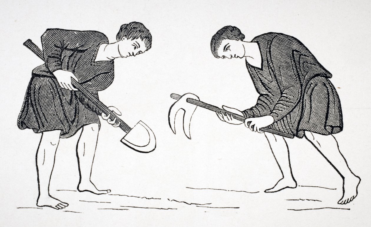 Serfs Labouring in the Fields with a Hoe and Spade, after a Miniature in a 12th Century Manuscript, from 'Le Moyen Age et La Renaissance' by Paul Lacroix (1806-84) Published 1847(Serfs Labouring in the Fields with a Hoe and Spade, after a miniature in a 12th century manuscript, from 'Le Moyen Age et La Renaissance' by Paul Lacroix (1806-84) published 1847 (litho))French School |