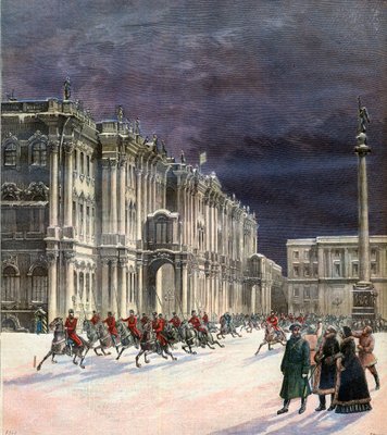 le petit journal · century · palaces · royal · homes · russia · st petersburg · scenic · architecture · people · soldiers · horses · winter palace · fashions · clothing · women · The Winter Palace · Private Collection / Bridgeman Images · / Look and Learn