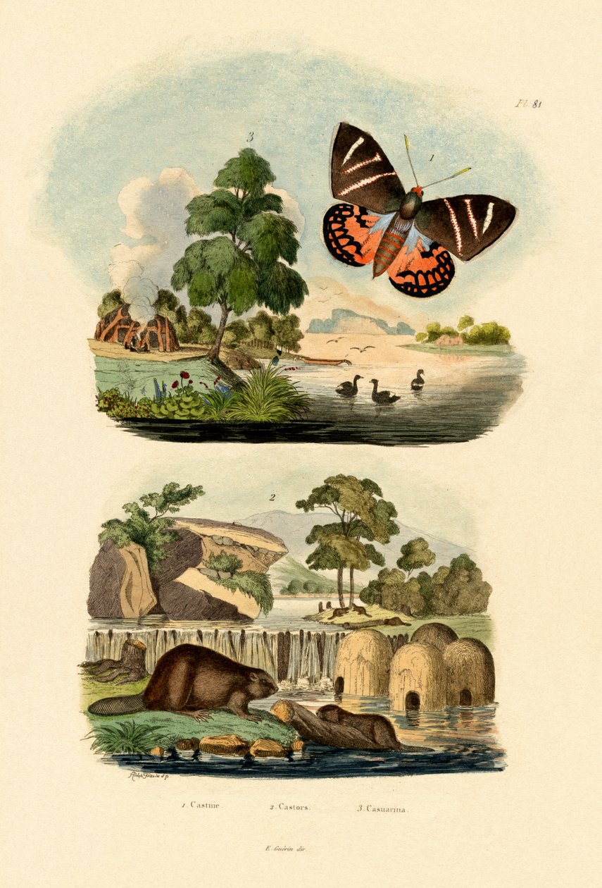 plants · beaver · australian pine · sun moth · moths · pines · illustration · Private Collection / Bridgeman Images |