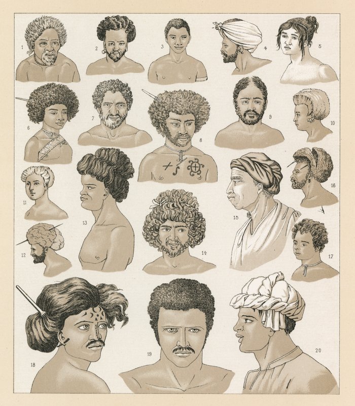costume · dress · clothes · historical · history · national · fashion · racinet · oceania costume · hair styles · style · Private Collection / Bridgeman Images · / Look and Learn |