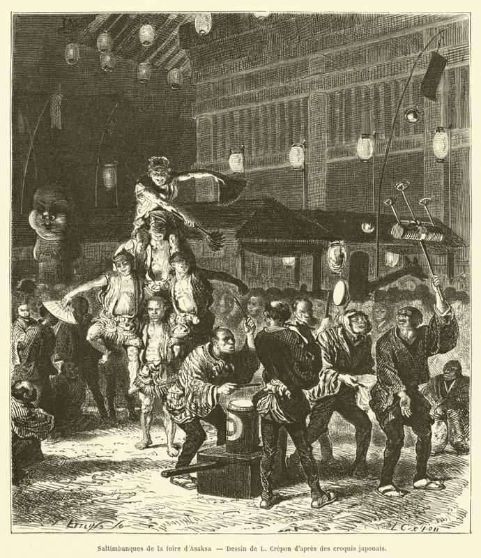 Acrobats of the Asakusa Fair (engraving)(Saltimbanques de la foire d'Asaksa (engraving))French School |