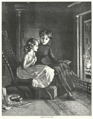 faces · fire · domestic scenes · fireplaces · women · children · girls · chairs · Private Collection / Bridgeman Images · / Look and Learn