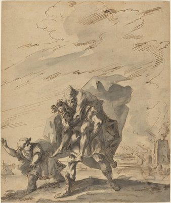 Aeneas Carrying Anchises from Burning Troy, c.1733(Aeneas Carrying Anchises from Burning Troy, c.1733 (pen and ink))Gasparo Diziani |