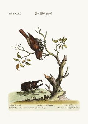 Watercolour illustration from a book of rare birds by G Edwards 1750(Watercolour illustration from a book of rare birds by G Edwards 1750. George Edwards (1694-1773) was a British naturalist and ornithologist. He travelled extensively through Europe, studying natural history and birds in particular. He gained some recognit)George Edwards |