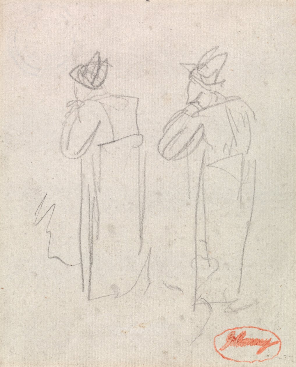 Two Standing Figures Wearing Tall HatsGeorge Romney |