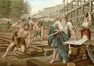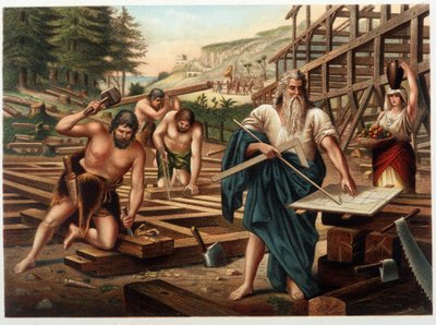 Construction of the Ark(Construction of the Ark (colour litho))German School |