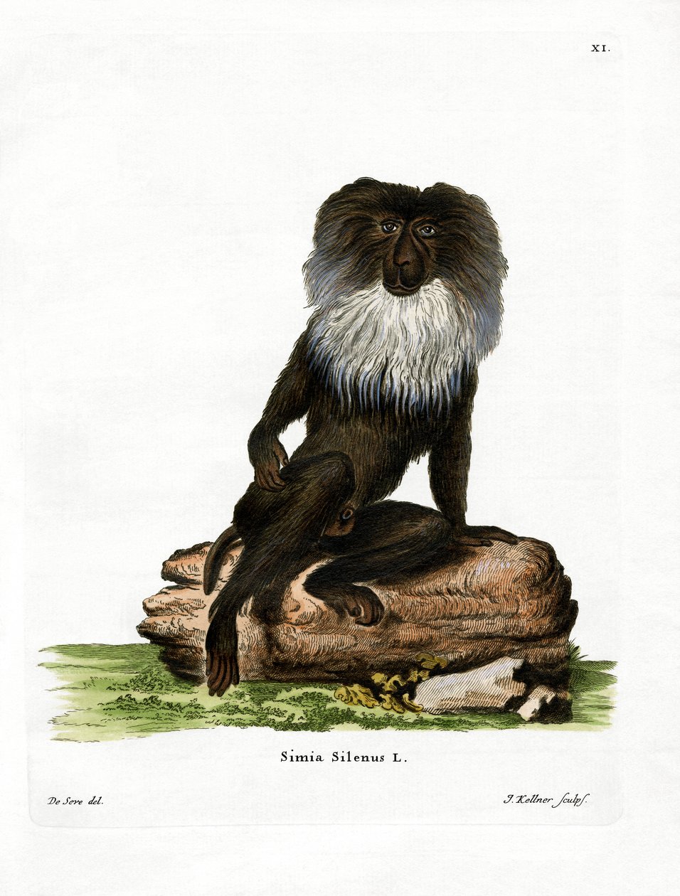 Lion-tailed Macaque(Lion-tailed Macaque (coloured engraving))German School |