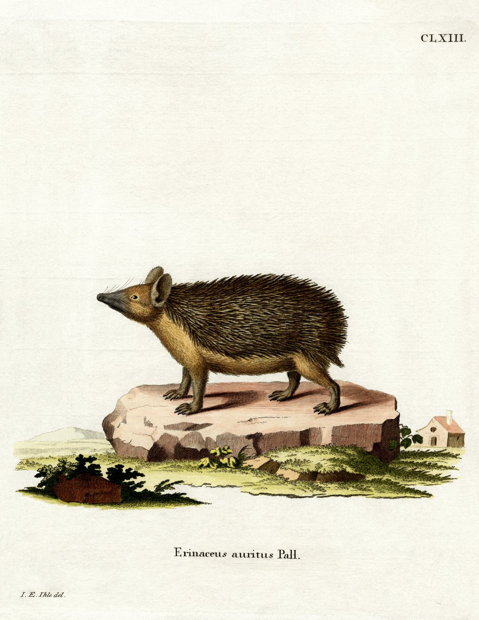 Long-eared Hedgehog(Long-eared Hedgehog (coloured engraving))German School |