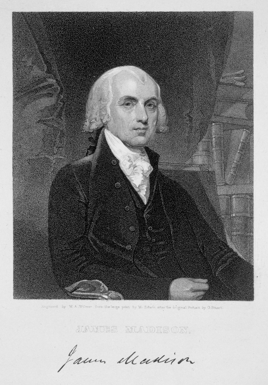 Portrait of James Madison, engraved by William A. Wilmer after the print by David Edwin(Portrait of James Madison, engraved by William A. Wilmer (c.1820-c.1855) after the print by David Edwin (1776-1841) )Gilbert Stuart |