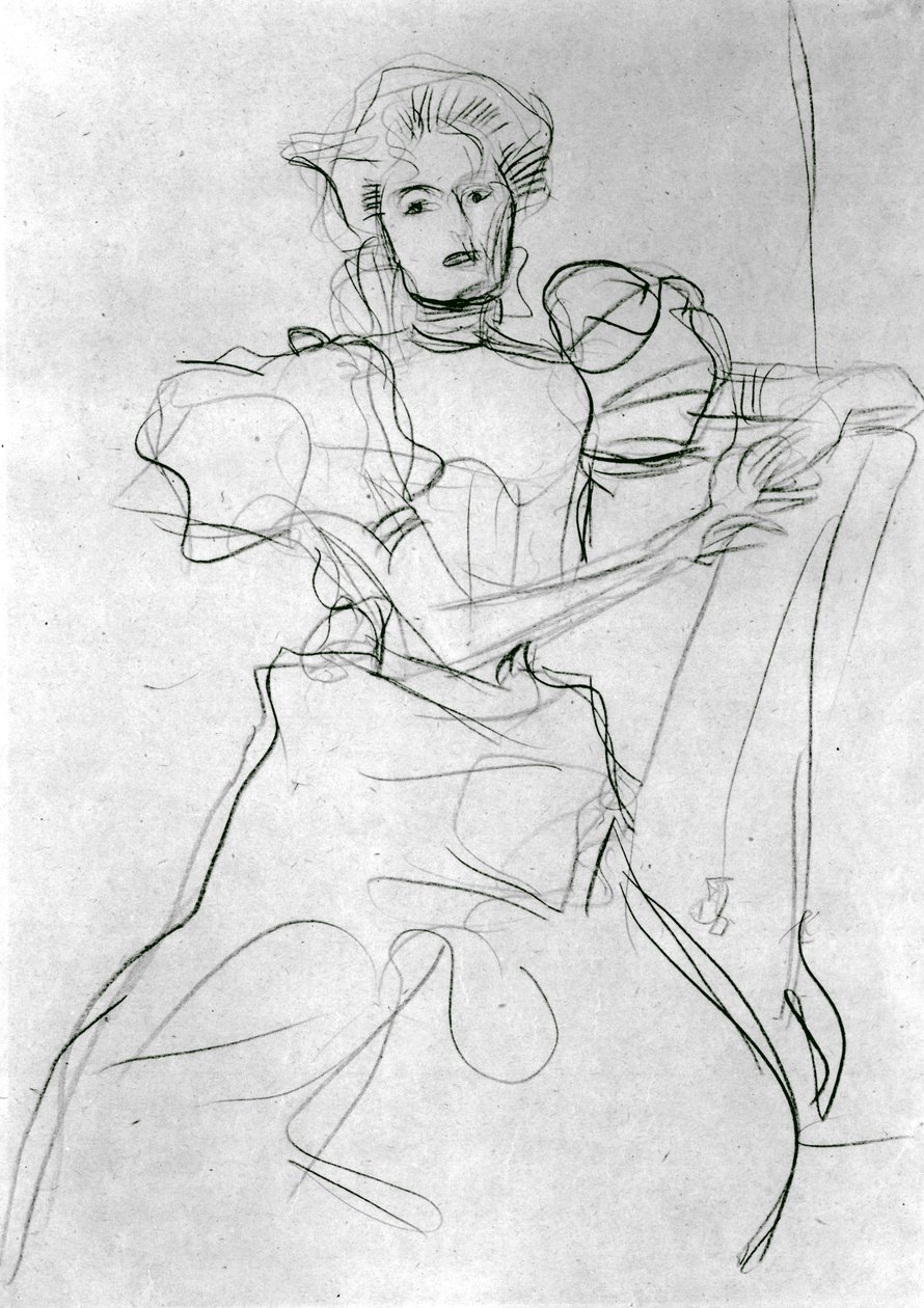 Seated Woman - Study for a Portrait of Sonja Knips, c.1898(Seated Woman - Study for a portrait of Sonja Knips, c.1898 (blue crayon on paper) )Gustav Klimt |