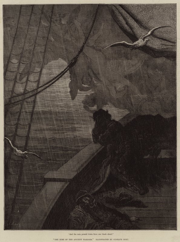rime · ancient mariner · rain · poured · black · cloud · poetry · samuel taylor coleridge · maritime · dramatic · Private Collection / Bridgeman Images · / Look and Learn