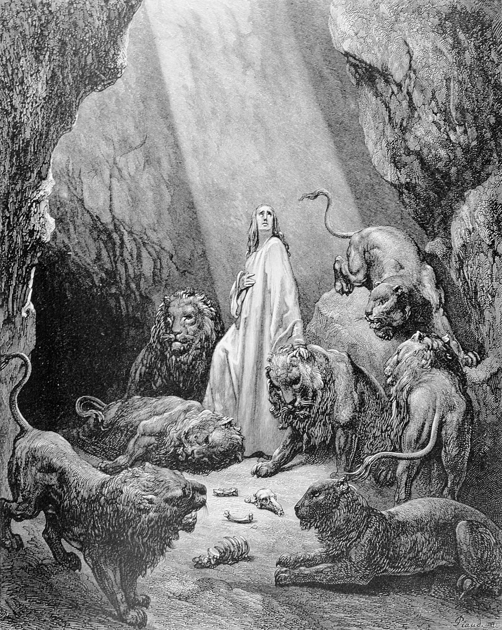 Daniel in the Den of Lions, engraved by Antoine Alphee Piaud(Daniel in the Den of Lions, engraved by Antoine Alphee Piaud, c.1868 )Gustave Dore |