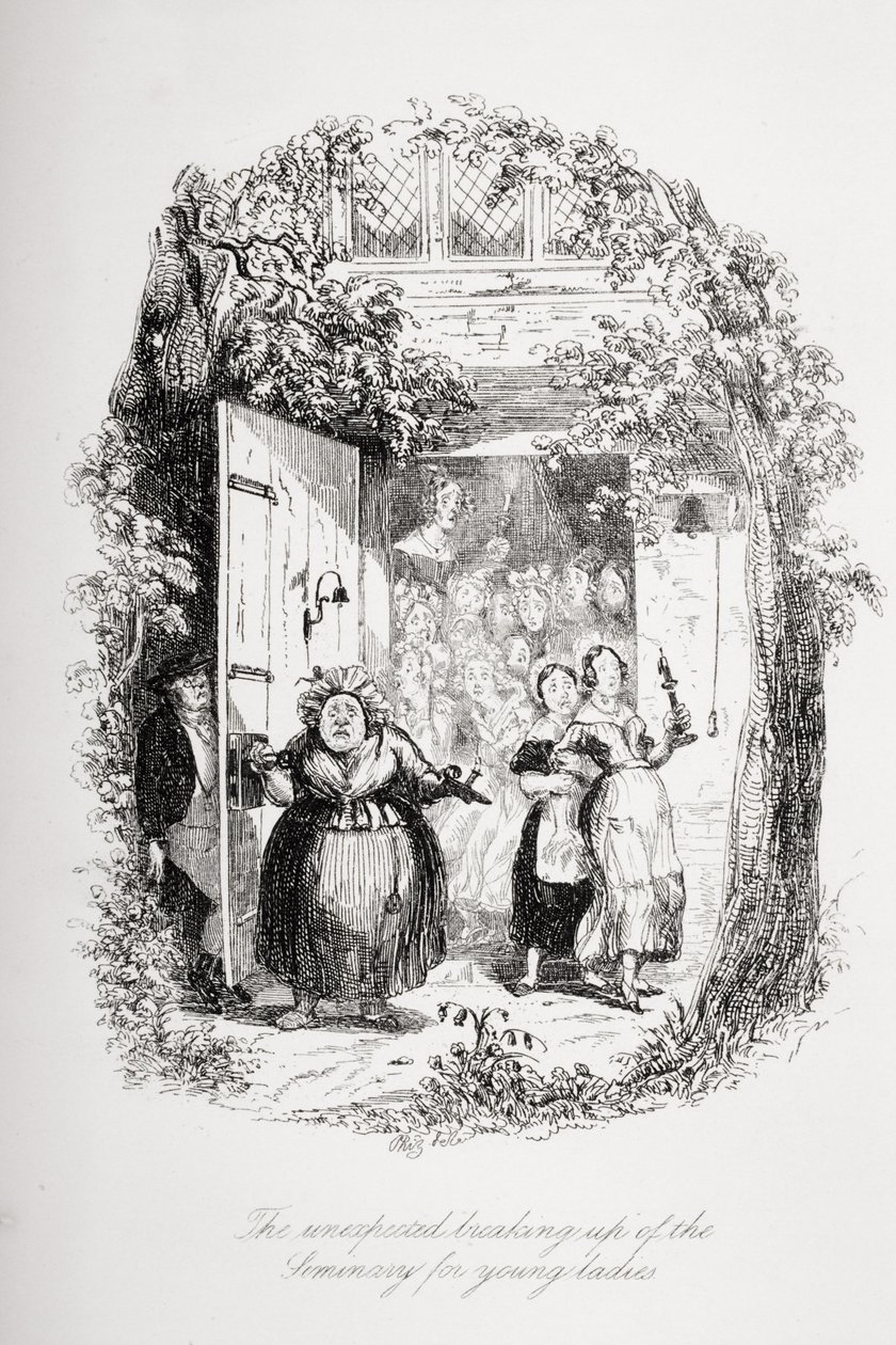 The Unexpected Breaking Up of the Seminary for Young Ladies, Illustration from 'The Pickwick Papers' by Charles Dickens(The unexpected breaking up of the seminary for young ladies, illustration from `The Pickwick Papers' by Charles Dickens (1812-70) published 1837 )Hablot Knight Browne |