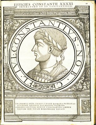 Iustinianus II, illustration from Imperatorum Romanorum Omnium Orientalium et Occidentalium Verissimae Imagines ex Antiquis Numismatis(Iustinianus II, illustration from Imperatorum romanorum omnium orientalium et occidentalium verissimae imagines ex antiquis numismatis, woodcut by Rudolph Wyssenbach, printed by Andreas Gesner, Zurich)Hans Rudolf Manuel Deutsch |
