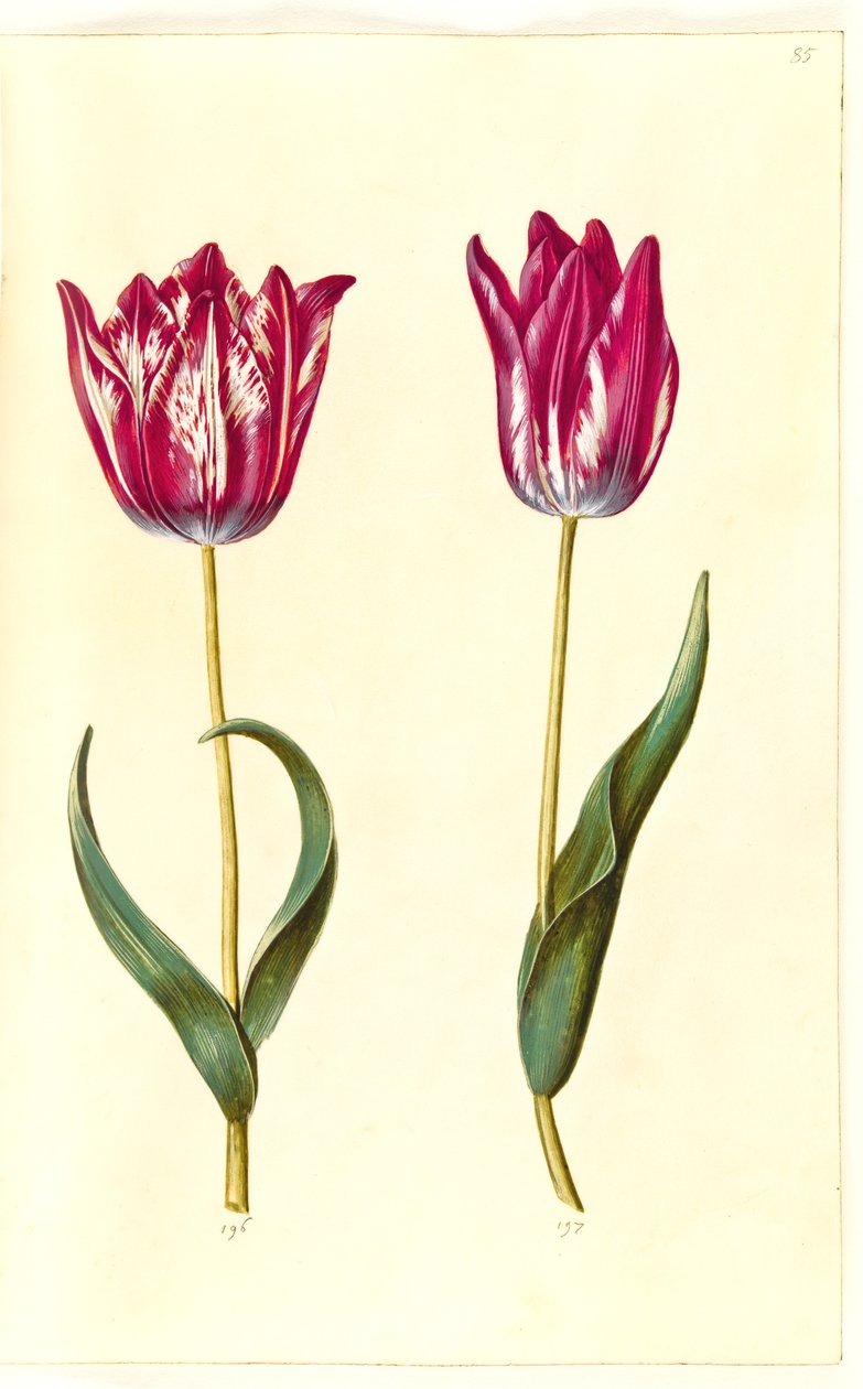 Tulipa gesneriana (garden tulip)(Tulipa gesneriana (have-tulipan))Hans Simon Holtzbecker,Maria Sibylla Merian(earlier ascribed to) |