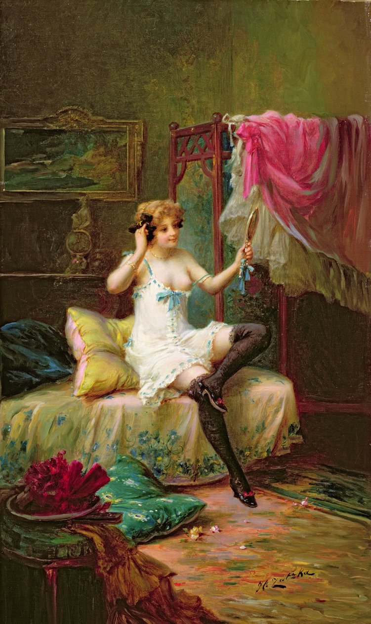 A Girl Looking in a Mirror(A Girl looking in a Mirror)Hans Zatzka |