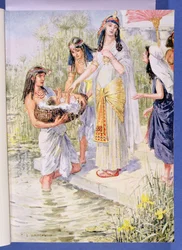 20th century · baby · bible · colour · egypt · africa · north africa · child · moses · old testament · bible (character) · basket · print · story · mzprint · stereoscopic card · / Bridgeman Images · / Look and Learn |