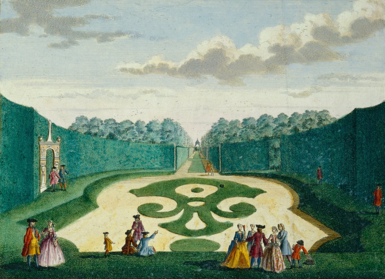 amsterdam · garden design · avenue · society life · formal gardens · male · female · trees · netherlands · c18th · hedges · hedge · maze · park · Private Collection / Bridgeman Images |
