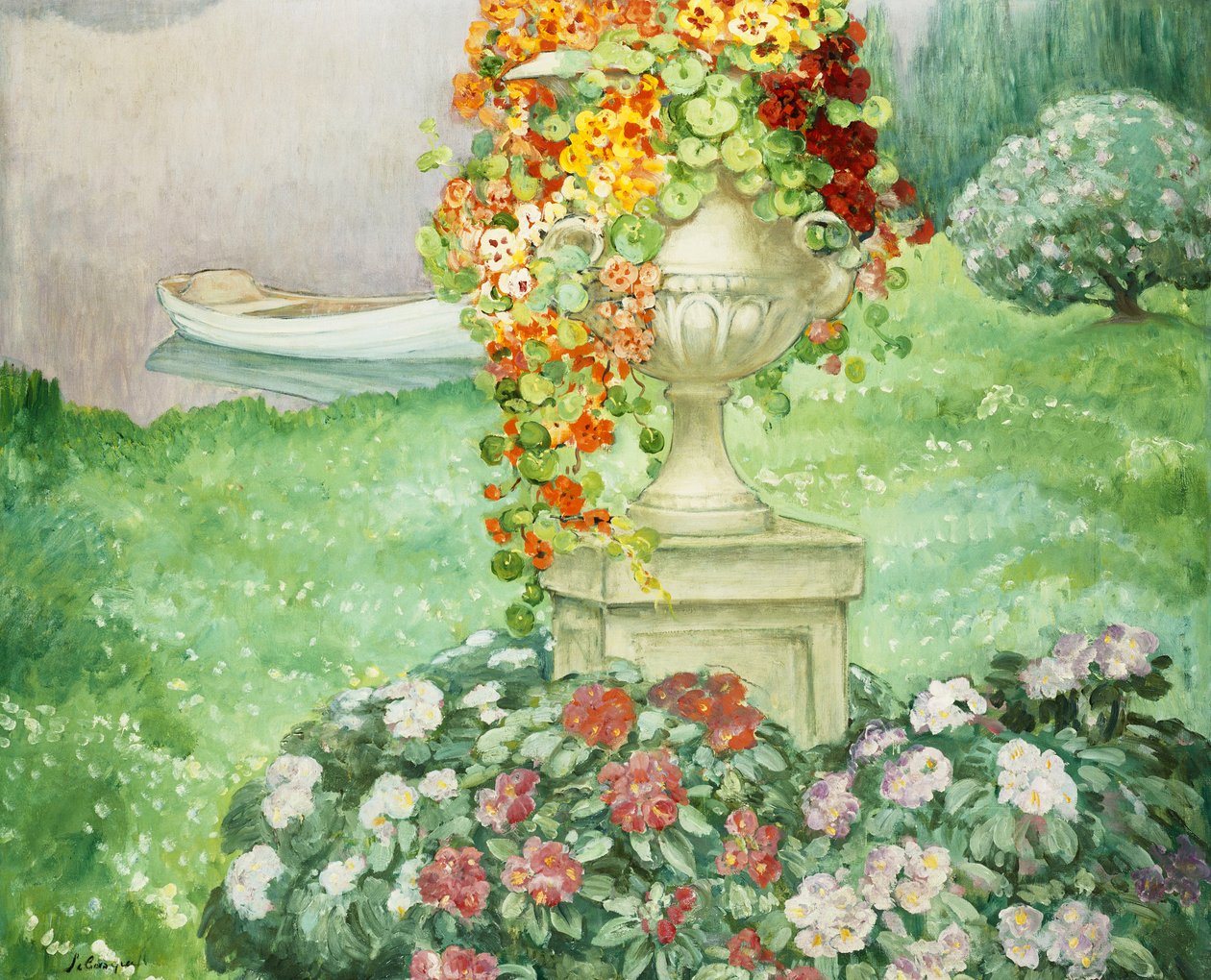 20th century · artist french · grounds · early twentieth century · outdoor · garden · reflection · time of day · flower pot · object · boat · impressionistic · oil on canvas · oil painting · floral · flowerbed · green · no person · lebasque · moored · impressionist art · impressionism · impressionist · fine art · embankment · flower · one object · natural space · stationary · peaceful · river bank · flowerpot · outside · french art · still · daytime · flowering plant · by the side of a river · white colour · flowers · color · gardening equipment · quiet · early 20th century · docked · european artist · no-one · white color · french artist · rivers edge · tree · white · plant part · artist-french · orange coloured · foliage · water transport · plant pot · flora · tranquility · hanging · 1910s · green colour · outdoors · riverbank · plant · garden feature · water vehicle · artist european · water · nature · positive concepts · potplant · single object · tranquil · nobody · reflected · twentieth century · no people · artwork · grass · peace · calm · colour · water vessel · transportation · painting · transport · henri baptiste lebasque · position · henri lebasque · 1910s · henry lebasque · orange · Private Collection / Bridgeman Images |