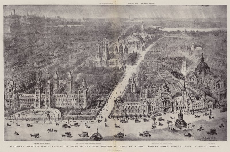 Bird's-Eye View of South Kensington showing the New Museum Building as it will appear when finished and its Surroundings(Bird's-Eye View of South Kensington showing the New Museum Building as it will appear when finished and its Surroundings )Henry William Brewer |