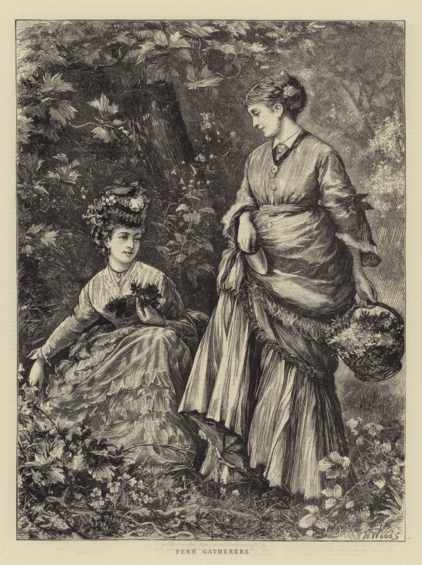 fern gatherers · women · gardens · fashions · clothing · Private Collection / Bridgeman Images · / Look and Learn |
