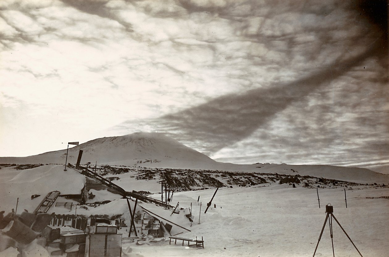 The Return of the Sun In Winter Quarters Working on Maps and Records, from The Winter Quarters. With Mount Erebus in the Background, c1908-1909 The party goes into Winter Quarters The Hut, with Mount Erebus in the Background, in the Autumn The Hut After The Winter, c1911, 1913 Part of Queen Alexandra Range 1500 Feet Up The Glacier Another View of the Hut in Summer, c1908 Smoke streaming from the Crater of Erebus The Queen Alexandra Range Photographed on the way down the Glacier Meares and Demetri at Discovery Hut, 4 November 1911 A View of the Hut Looking Northwards The Camp Below The Cloudmaker, c1908-1909 The Winter Quarters of the Discovery Expedition at Hut Point The Hut in Summer Time, Coal Bags at the Left Sunset on the Pack Grisi Depot, Latitude 82° 45 South, c1908, 1909 The Hut at Cape Adare, c1911, 1913 Mount Erebus in Eruption on June 14, 1908, 1909 The Old Crater of Erebus, with an Older Crater in the Background Hut Point and Observation Hill Mount Erebus Over a Water-Worn Iceberg Trenches and fences on the slopes of Monte Nero during World War I Album "Meine weltkriegs - Erinnerungen South-West Front (Carinthia, Italy, South Tyrol) 31/03/1915-12/11/1918 - Josef Zohles Wien": soldiers in the snow Dumb-Bell Cloud Above Erebus Entering McMurdo Sound - Cape Bird and Mount Erebus Western Party Lower Glacier Depot. The stores were buried in the snow, c1908