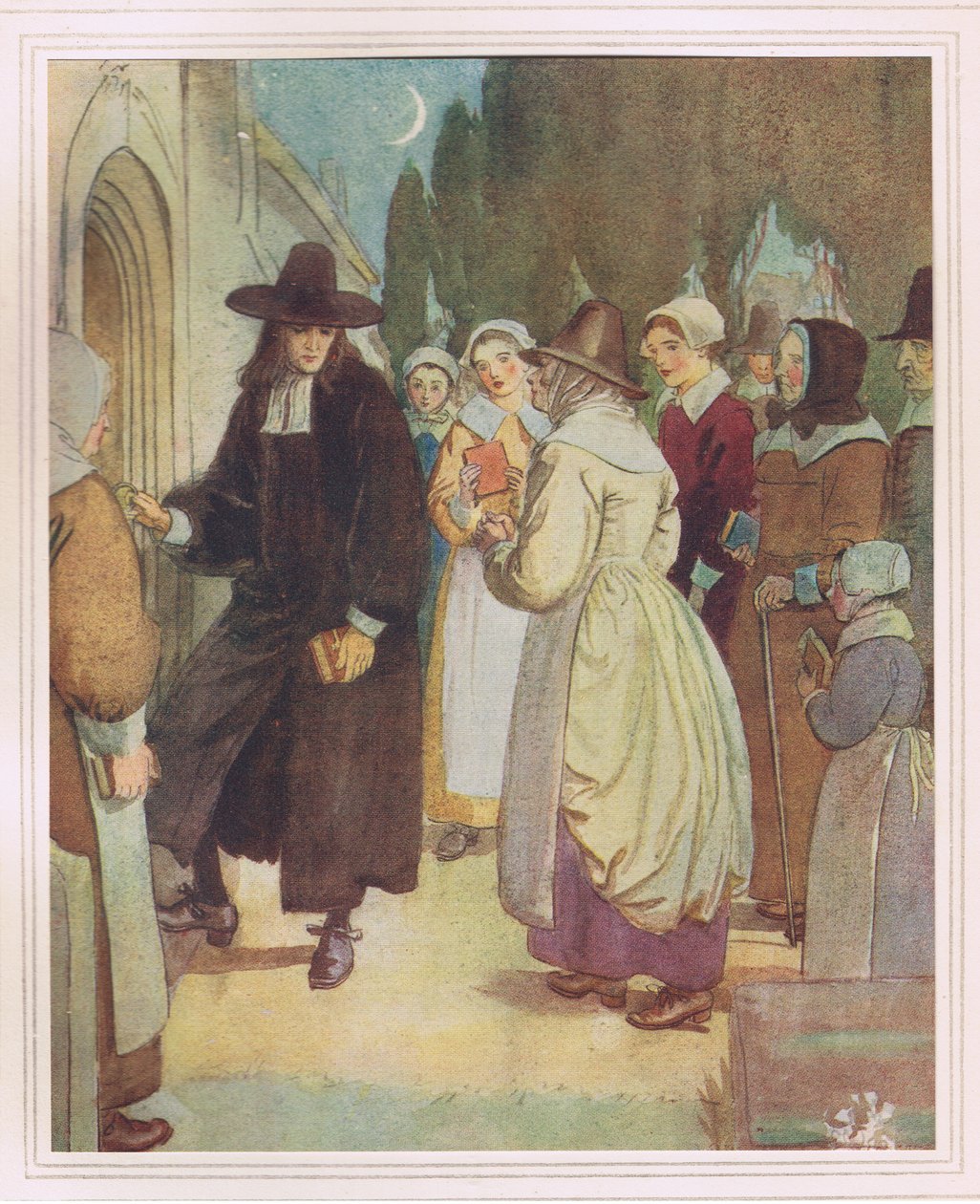 hawthorne · american · puritan · literature · scarlet letter · new england · boston · minister · followers · church · religious · costumes · Private Collection / Bridgeman Images |