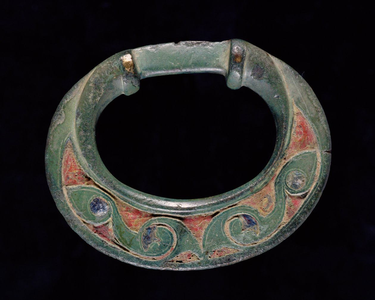 Rein Ring (Terret), Iron Age(Rein ring (terret), Iron Age (cast bronze with red and blue glass inlay))Iron Age |